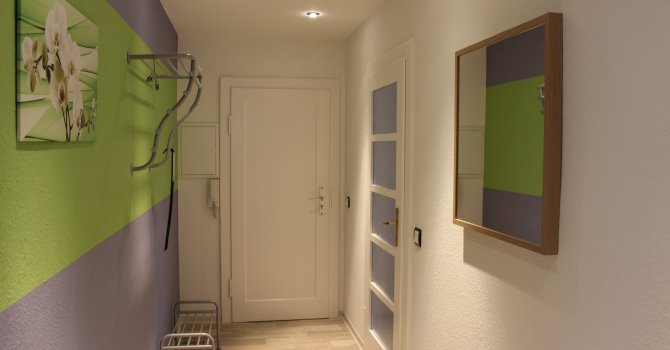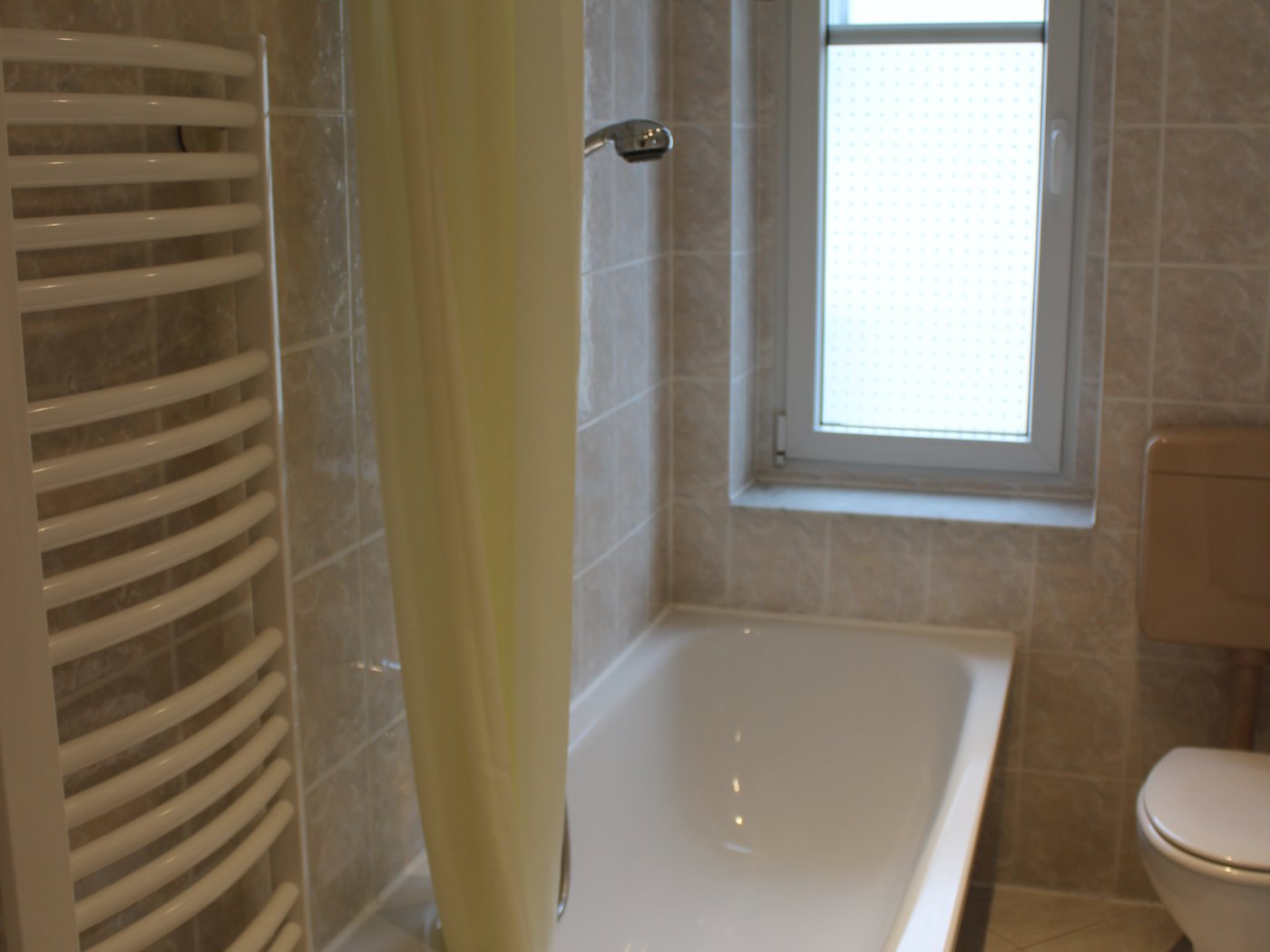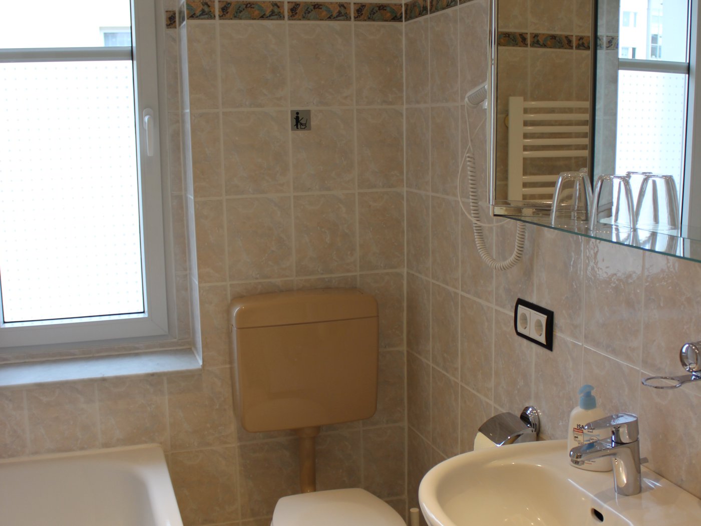 Bad: mit Badewanne und Duschmöglichkeit, Waschbecken, WC, Haartrockner