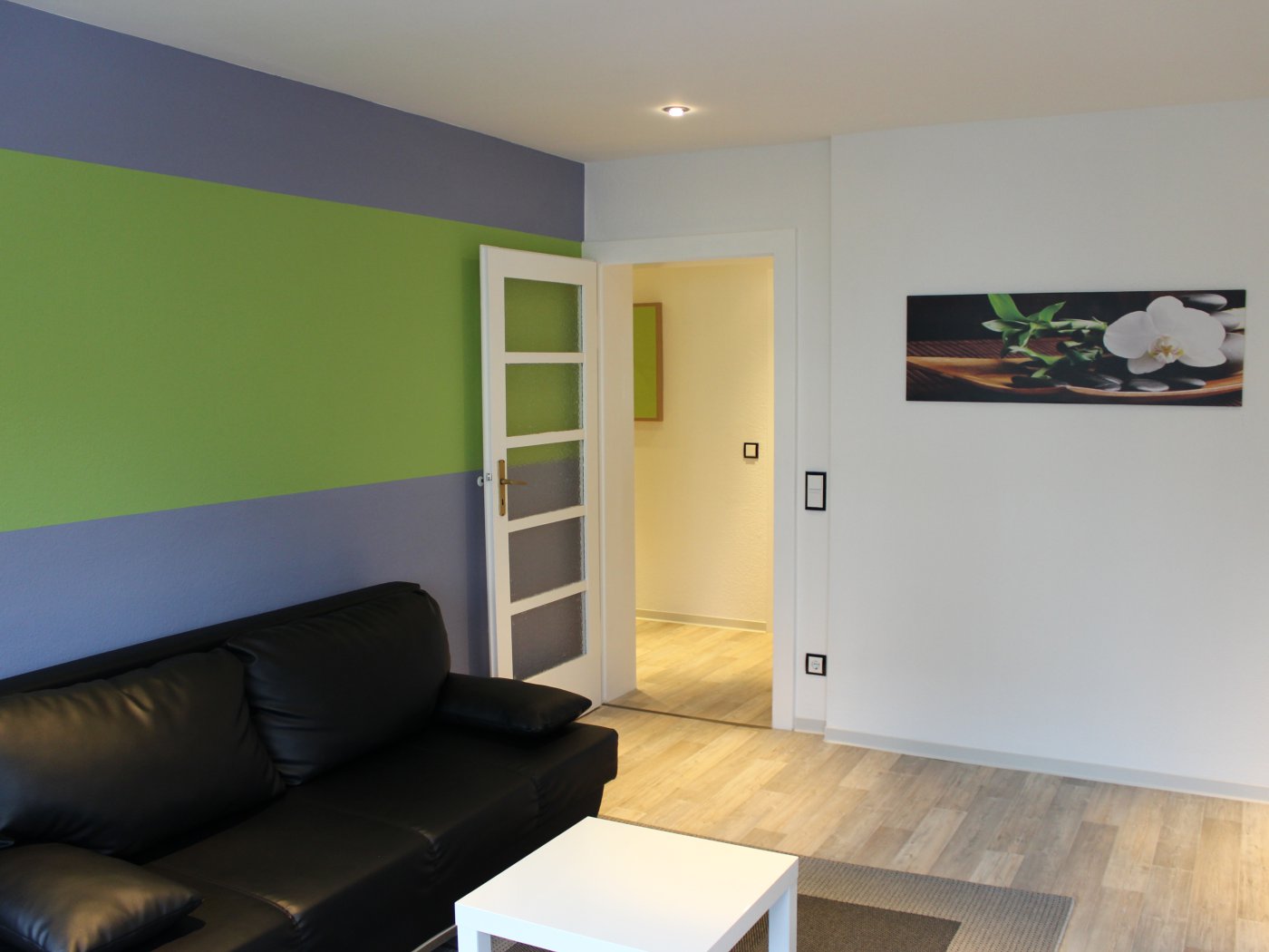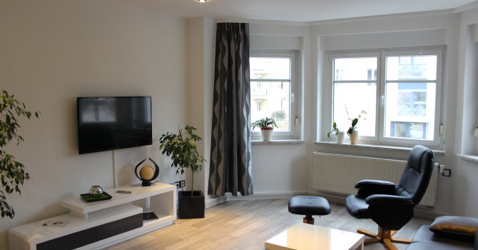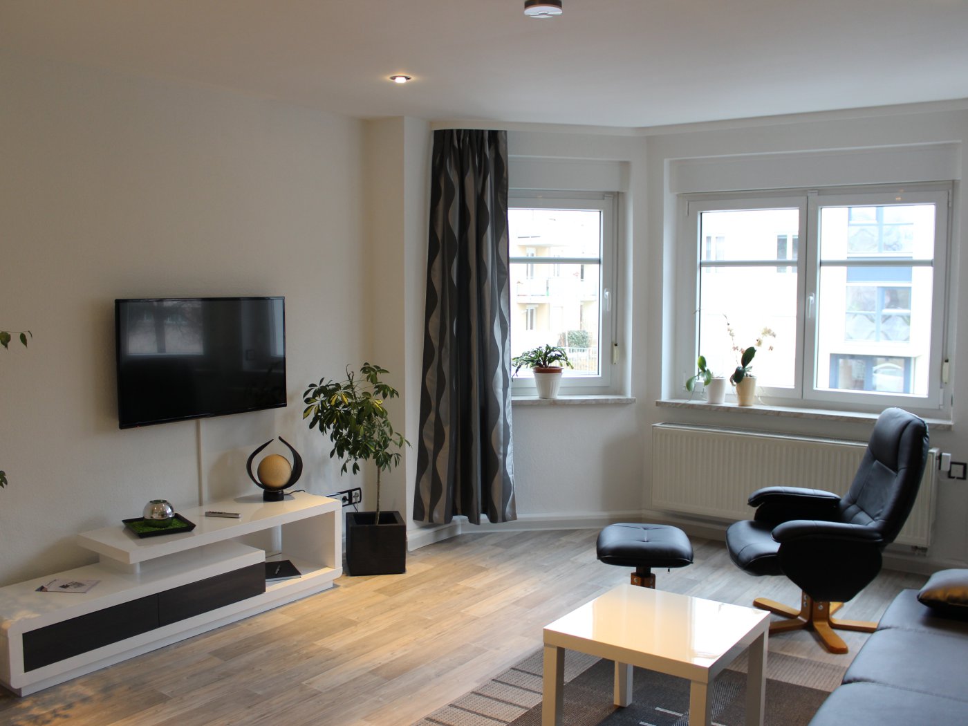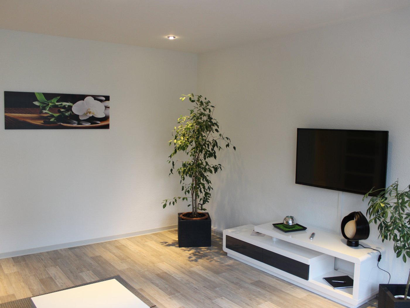 Wohnzimmer: Schlafcouch (Liegefläche ca.145x196cm), Couchtisch, Flachbildfernseher, Digitale Radio- und Fernsehprogramme über Satellitenanlage
