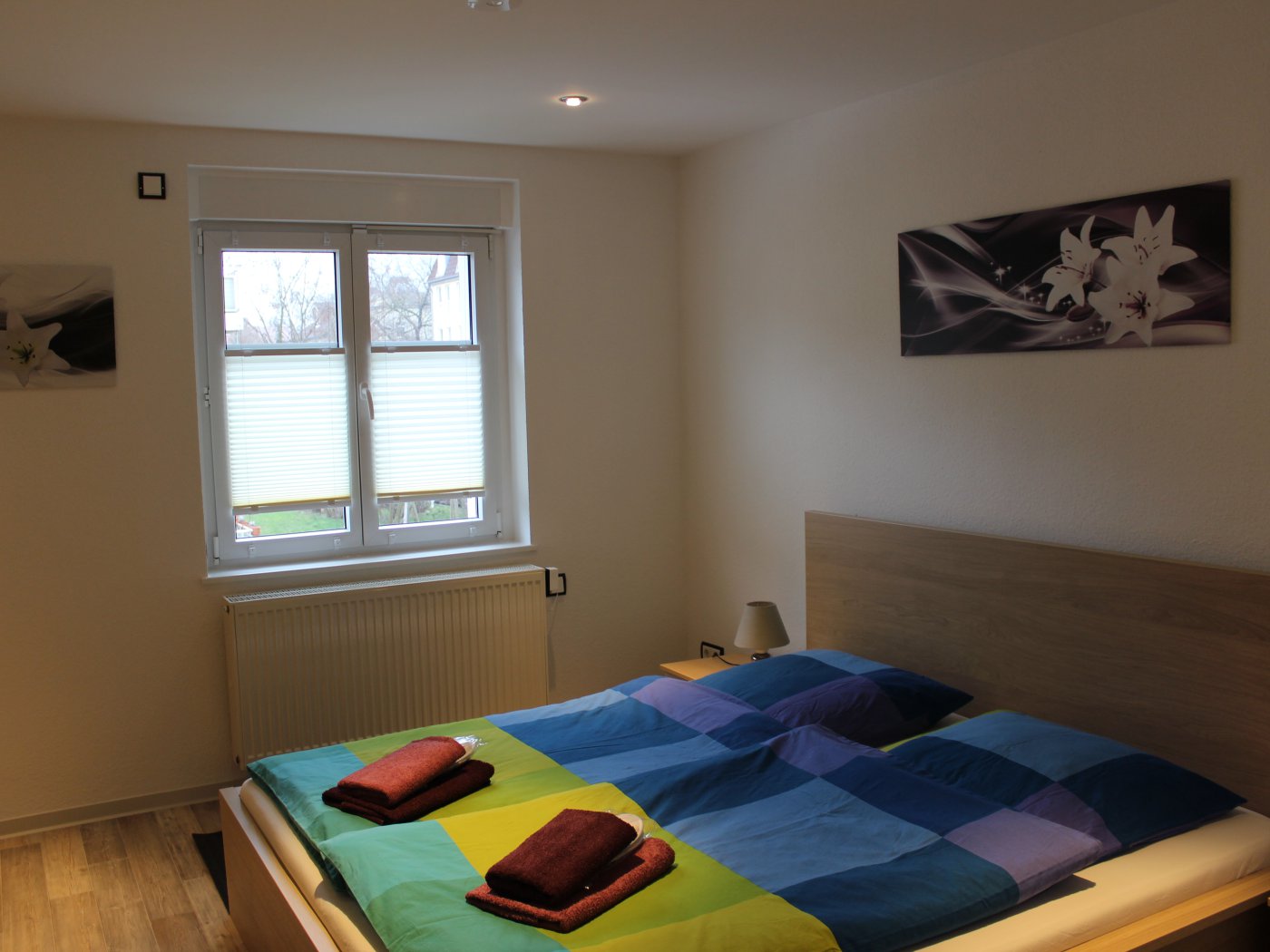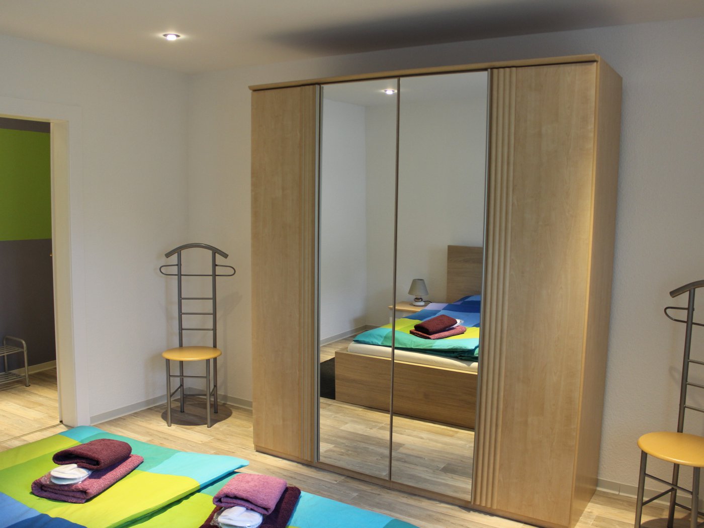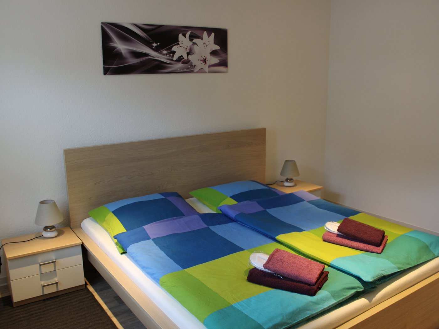 Schlafzimmer: Doppelbett mit einer Liegefläche von 180x200cm, geräumiger Kleiderschrank, Nachttischlampen