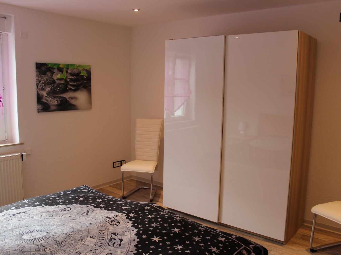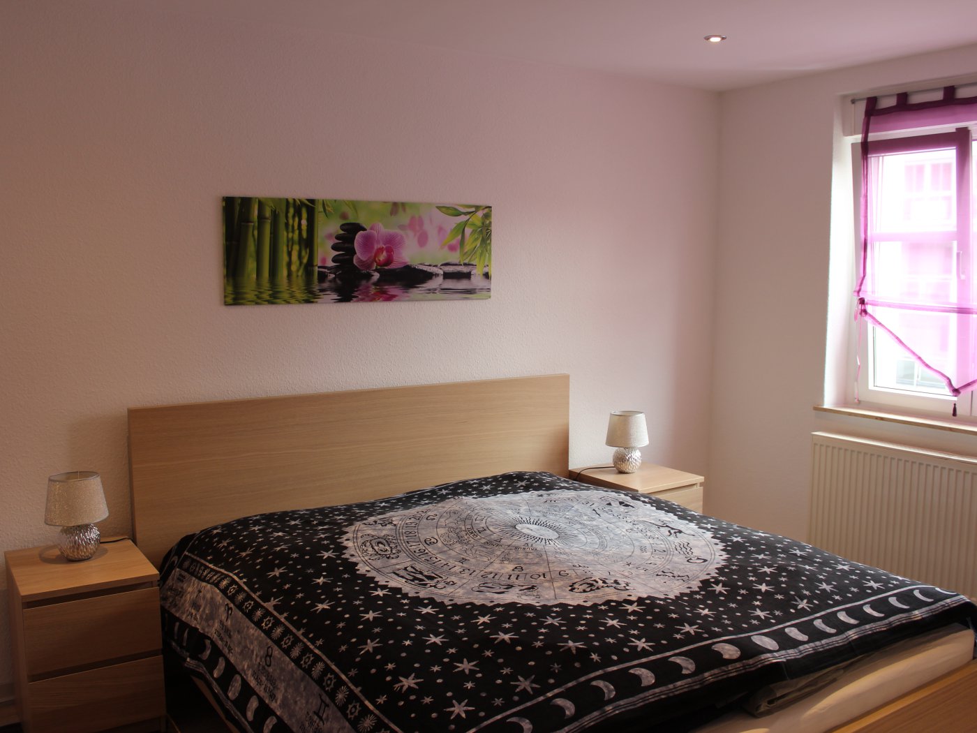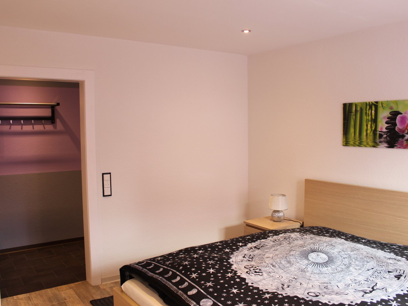 Schlafzimmer: Doppelbett mit einer Liegefläche von 180x200cm, geräumiger Kleiderschrank, Nachttischlampen