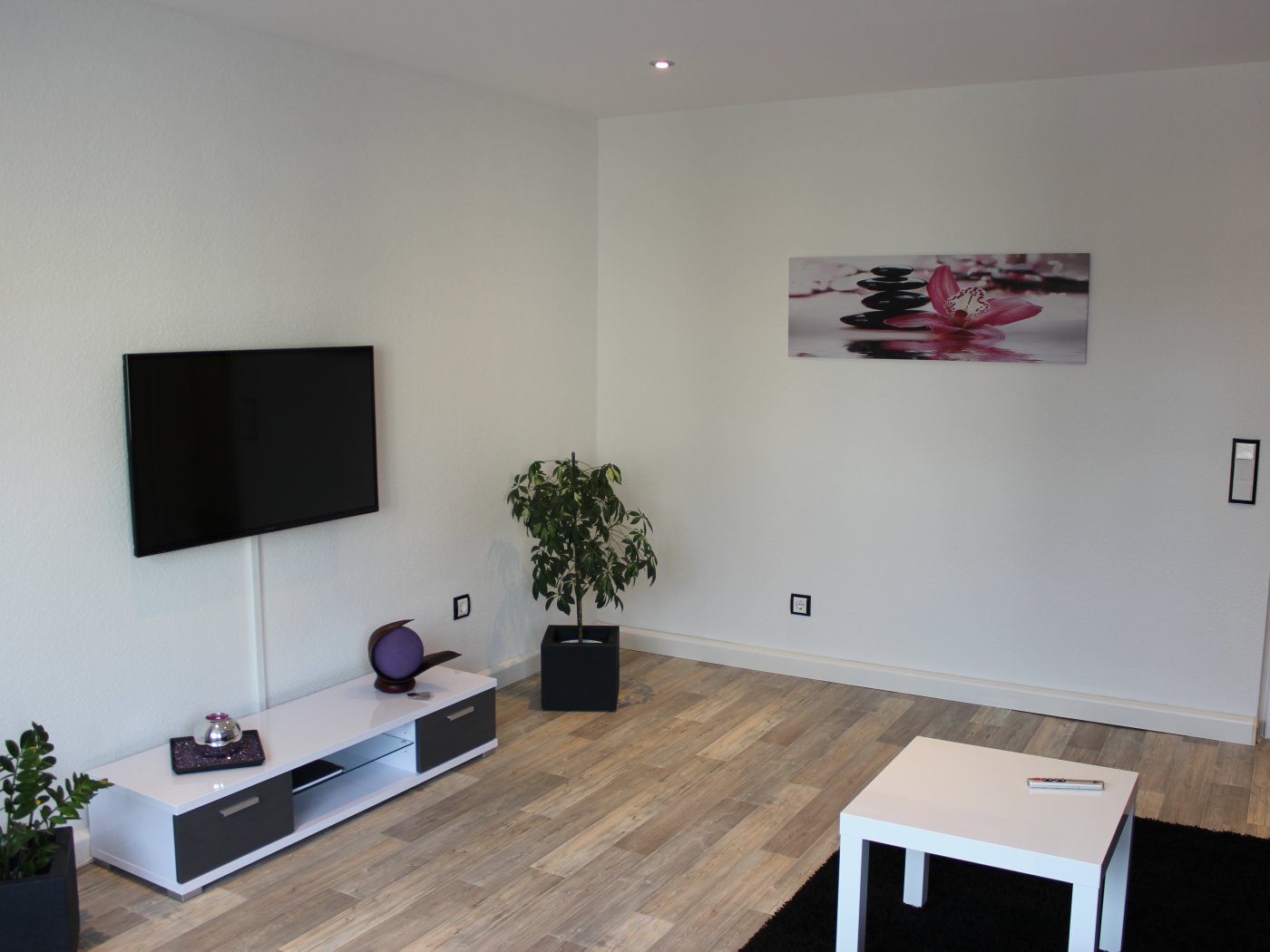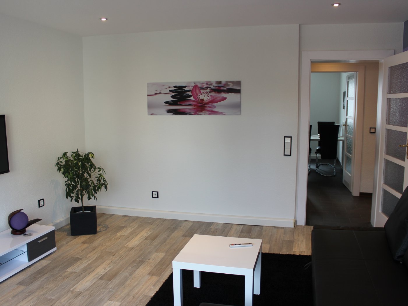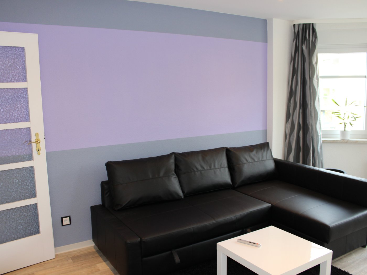 Wohnzimmer: Schlafcouch (Liegefläche ca.145x196cm), Couchtisch, Flachbildfernseher, Digitale Radio- und Fernsehprogramme über Satellitenanlage