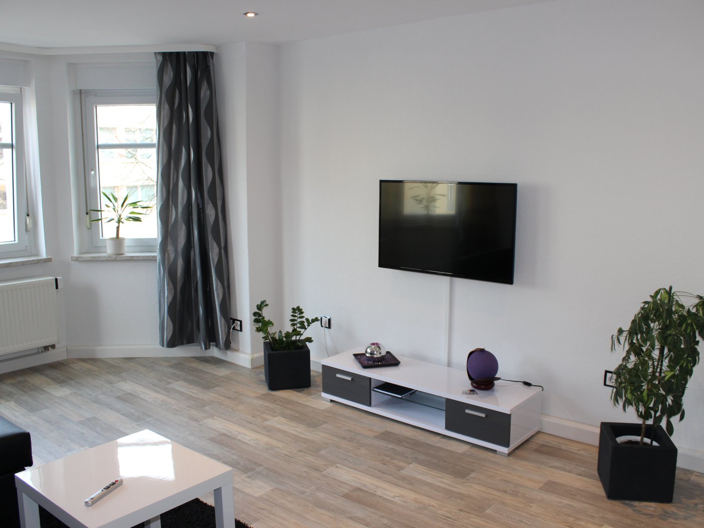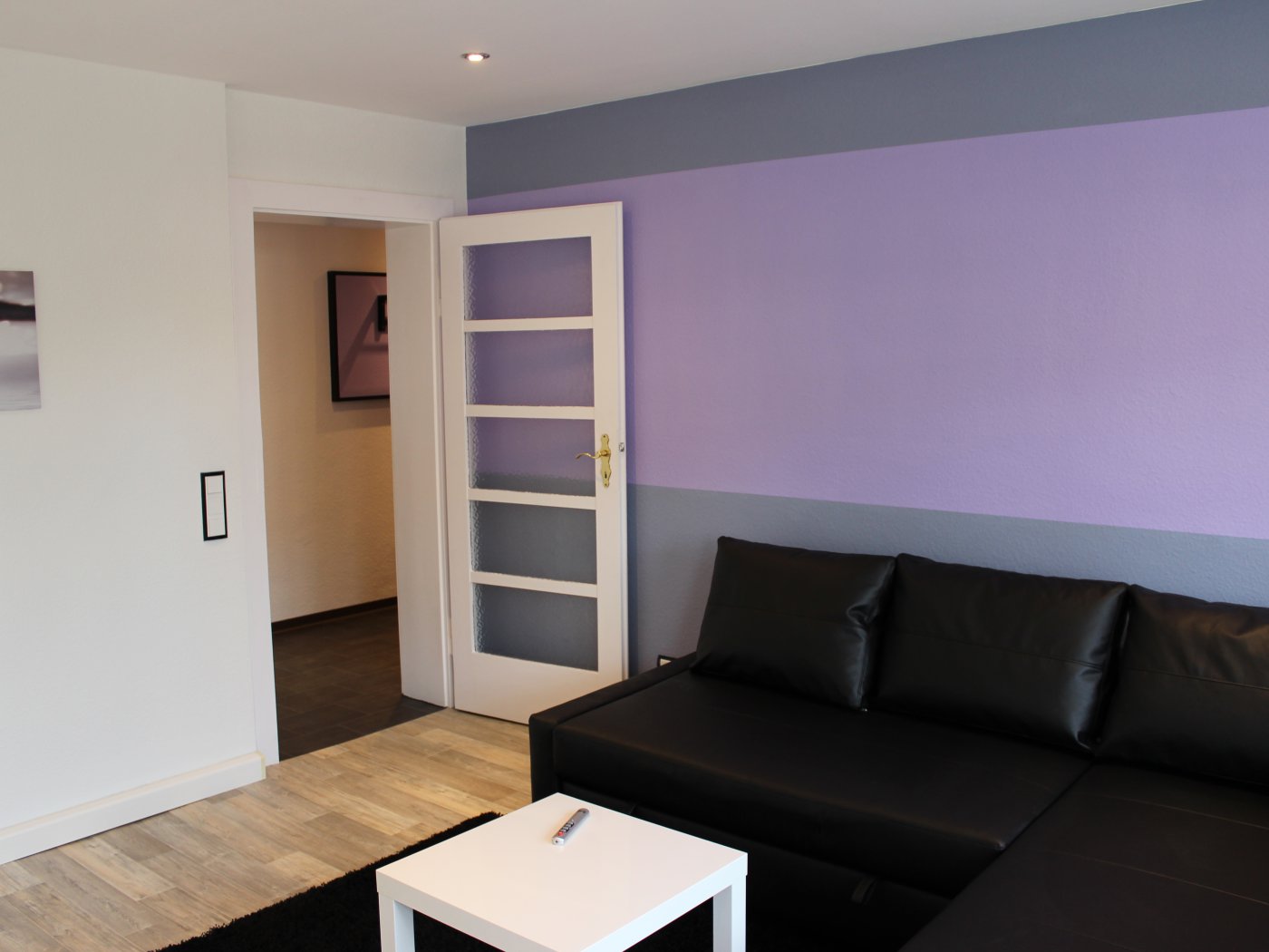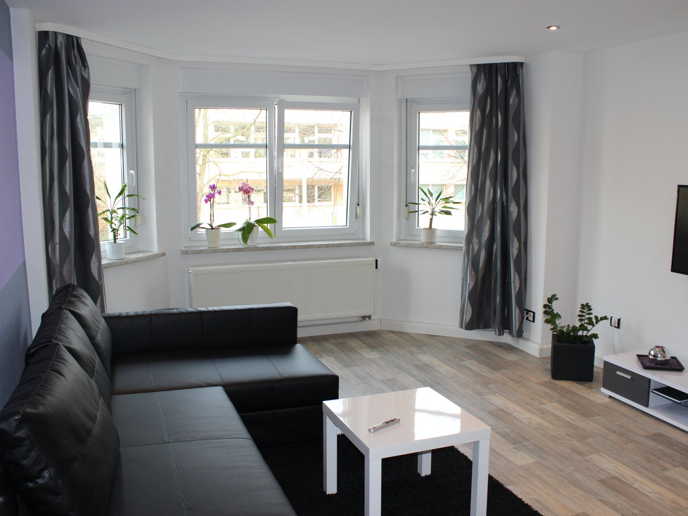 Wohnzimmer: Schlafcouch (Liegefläche ca.145x196cm), Couchtisch, Flachbildfernseher, Digitale Radio- und Fernsehprogramme über Satellitenanlage